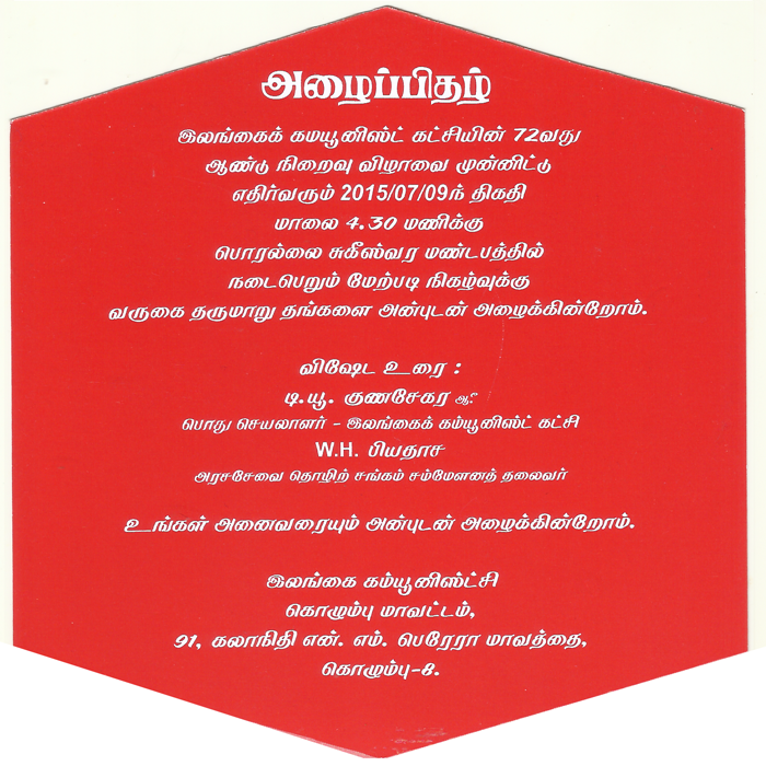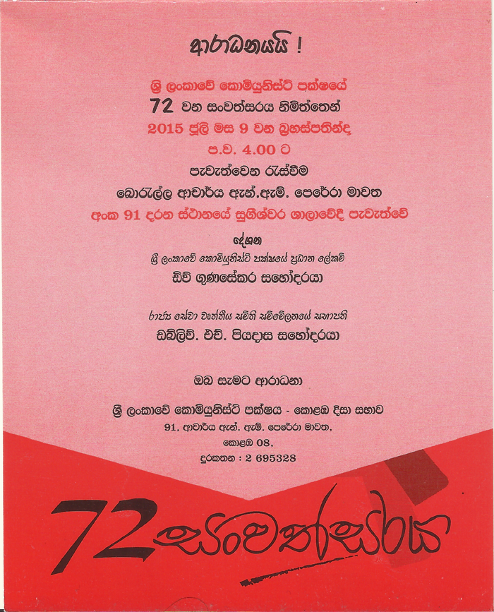 72nd Anniversary of the Communist Party of Sri Lanka | |