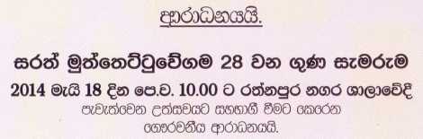 ![]() 23rd December 2013 at 4 p.m. Venue: "Sugeeswara Hall", 91, Dr. N,.M. Perera Mawatha, Borella. Download Invitation |