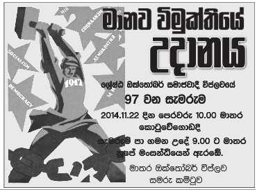 97th Anniversary of the Great October Socialist Revolution speech by comrade D.E.W Gunasekara |